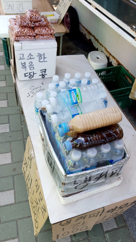💧 Always bring drinking water or other beverages. First of all, staying hydrated is essential. In addition to that, you never know whether you need to wash something [e.g. your hands, equipment, food] along the way. As an alternative to water, Koreans consume cold tea for refreshment. [And they refer to it as “water” (mul 물) as well!] 🍵 There is a large diversity of teas which are made from herbs, roots and grains. 🌾🌿🌽 Most common may be roasted barley tea (보리차) and roasted corn tea (옥수수차), which are more popular than green tea or black tea in Korea! Anyways, water and typical teas – conveniently bottled and refreshingly cooled – are available in stores, at vending machines and sold by road vendors. When the weather is warm, you may even get bottled water that is frozen, and then drink ice-cold water as it melts during the journey! ❄️ If you want to lower the use of plastic, however, take your own re-usable water bottle and fill it with whatever you enjoy drinking! 🥤