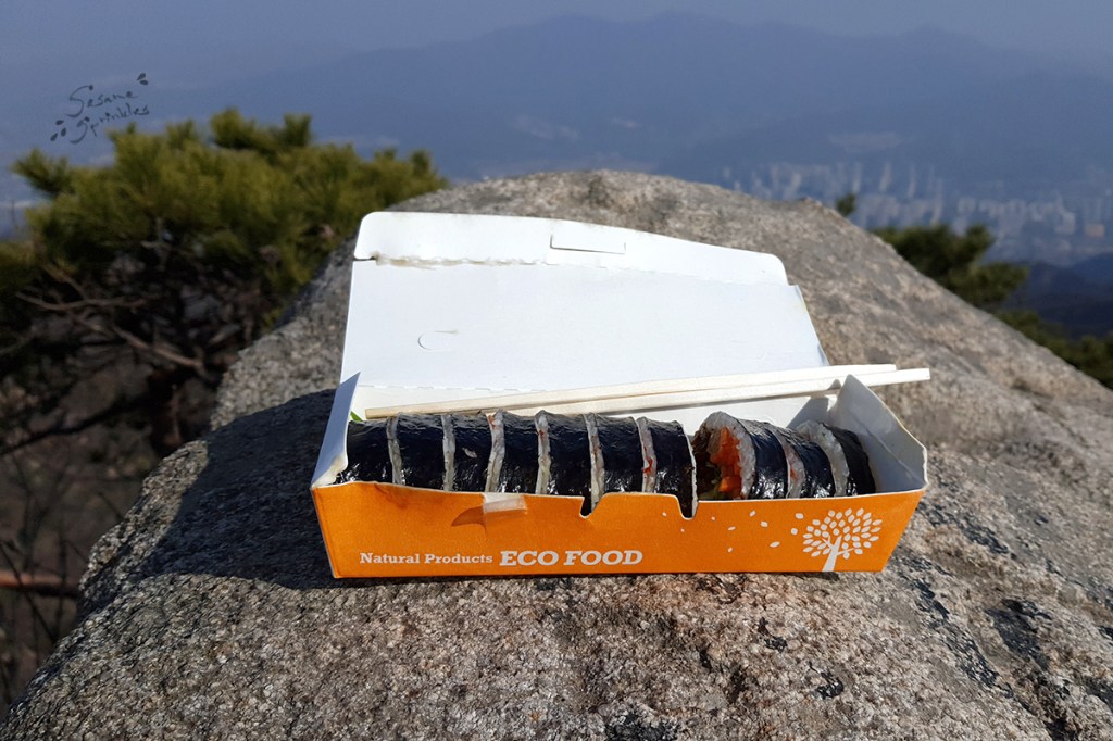🥚 Here’s one vegetarian option: In Korea, boiled or baked eggs are a popular source of protein on hikes. Unless the eggs are pre-seasoned or sold with a small pouch of salt [this is usually the case at convenience stores], you may want to bring your own salt with you. 🧂 The shell is the ideal packaging, sturdy and light-weight. But even though egg shells are biodegradable, they are not considered as “food waste” (음식물쓰레기) in South Korea and thus need to be disposed off as “general waste” (일반쓰레기).
