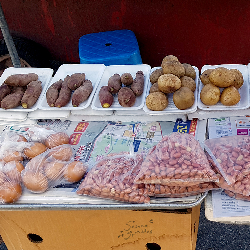 🥜 Nuts and peanuts seem to be a universal snack, and they are great when traveling outdoors, since they are small yet nutritious. In Korea, tree nuts are usually rather pricey, while peanuts are more affordable. 💲🥜 Occasionally, you may find a food stall with roasted chestnuts around a hiking area. 🌰 You might smell their presence from far away because they are very aromatic!