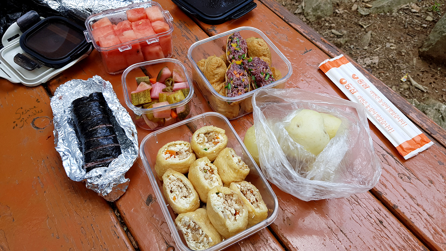 In summary, these are the vegan and vegetarian options among South Korea’s conventional hiking foods. [Note that they are not “traditional” because bananas and citrus fruits, for instance, have become widely available and affordable only over the past few decades!]