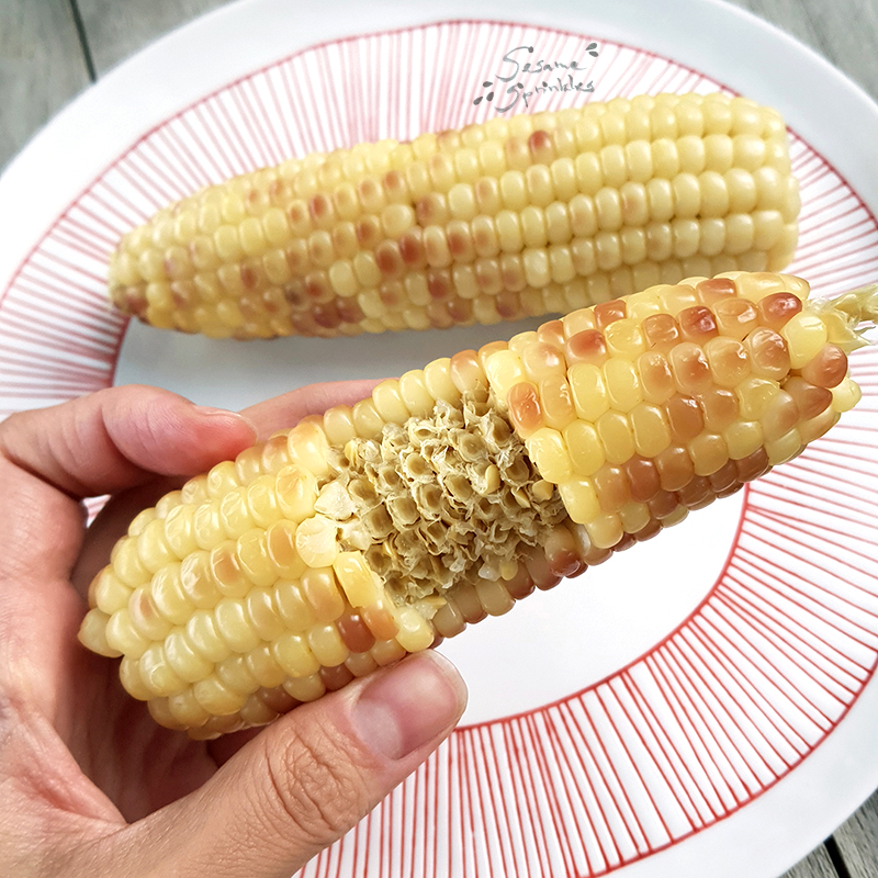In its raw form, the corn kernels are filled with a milky white and starchy liquid making it unpleasant to eat raw! [Of course I tried to eat them raw myself! 😵💫🤓] Due to the high starch content, glutinous corn is best consumed heated so that the starches cook through!