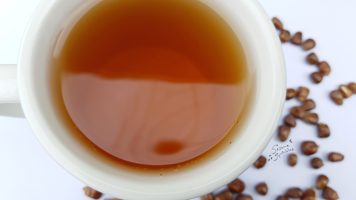 Corn tea. 🌽🍵 More than water, Koreans drink tea to quench their thirst. Both warm as well as cold tea. ♨️🧊 But not necessarily tea made from the tea plant (Camelia sinensis)! Among the countless Korean teas, grains are frequently the main ingredient. 🌾 Corn tea, in fact, is one of the most common beverages in Korea, available in restaurants, stores and quickly made at home! This oksusu cha (옥수수차) is made by boiling roasted corn in water. Korean corn tea is brown to caramel-colored but always translucent. It has dark and roasted aromas, while tasting light and soothing. 🤎☕️ You can find roasted corn kernels on traditional markets or purchase conveniently portioned tea bags filled with ground roasted corn in supermarkets. In addition to that, convenience stores and supermarkets offer pre-made corn tea – cooled, bottled and ready for consumption!